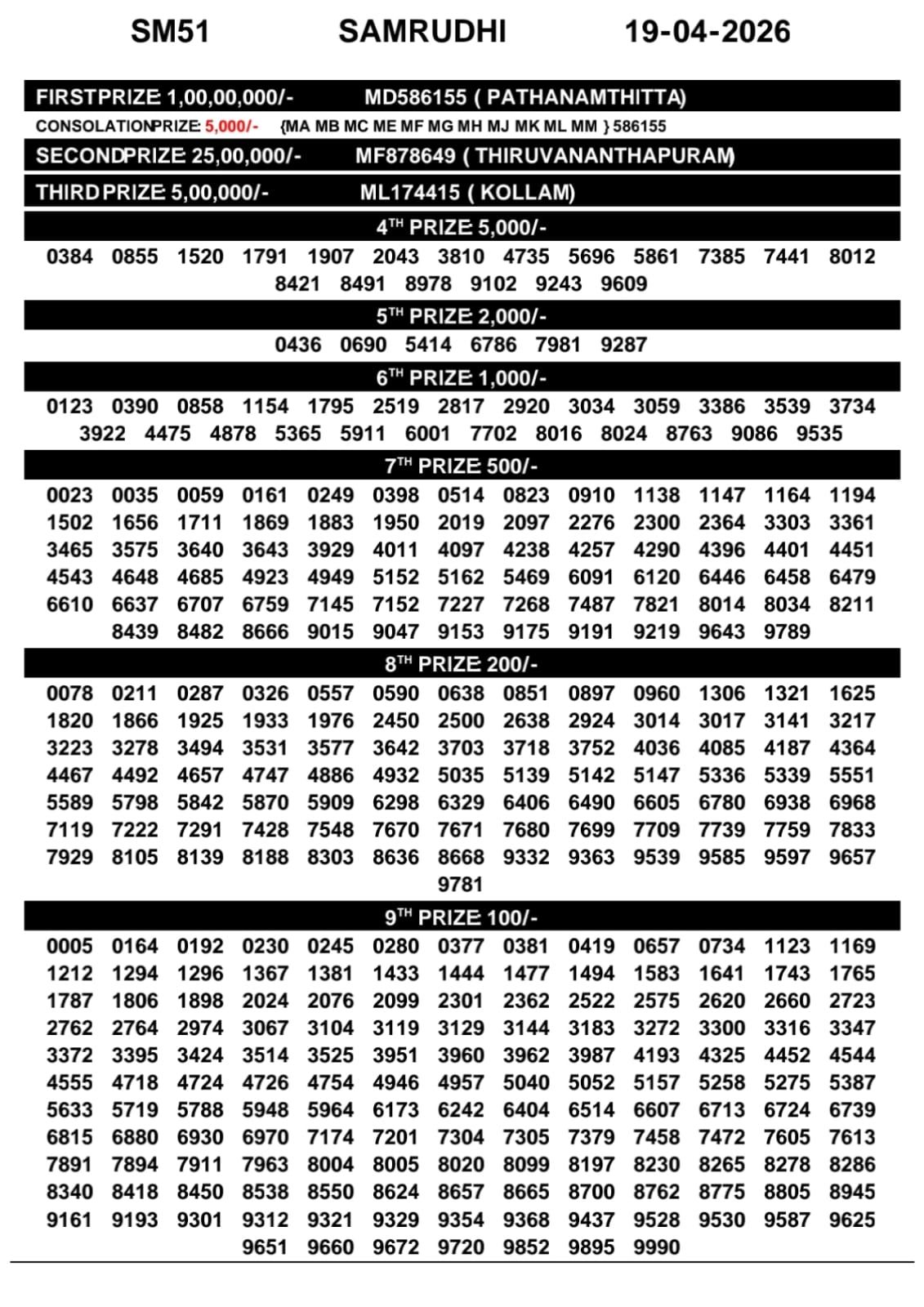 This page covers Kerala Lottery Result for 19 April 2026: Samrudhi (SM). Refresh for live lottery result updates and the Kerala lottery chart once published.