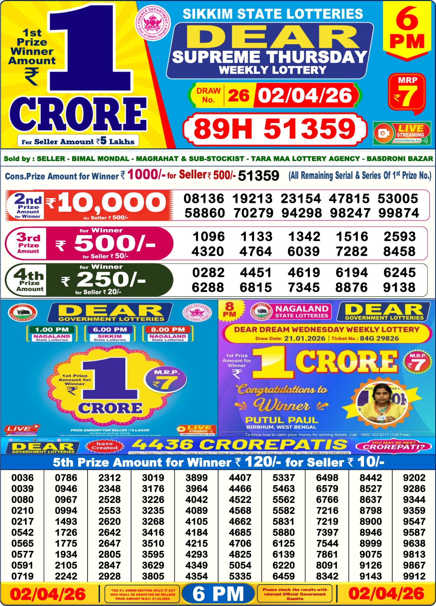 This page updates the lottery today result for Sikkim at 6 PM. Check live lottery result winner number and official chart here.